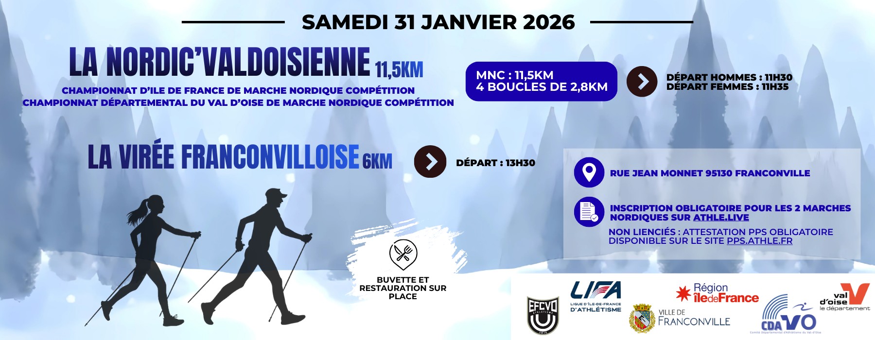 * ouverte à tous les marcheurs nordiques licenciés ou pas. Les non licenciés devront être en possession du Pass Prévention Santé. Il n’y aura pas de classement et pas de podium. Une médaille sera remise à chaque participant. Inscription sur athle.live